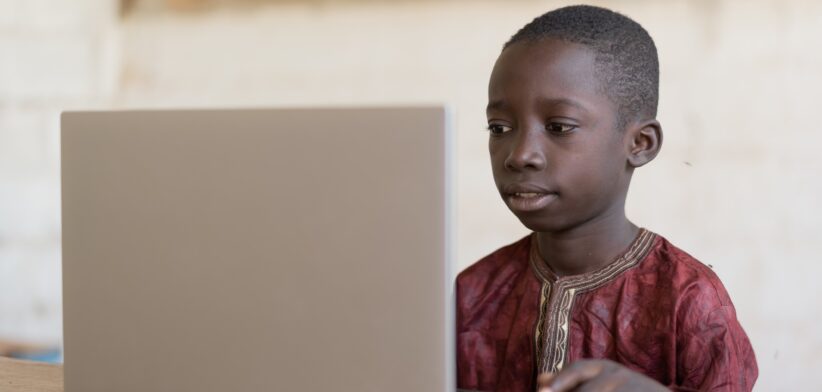 African child on computer.